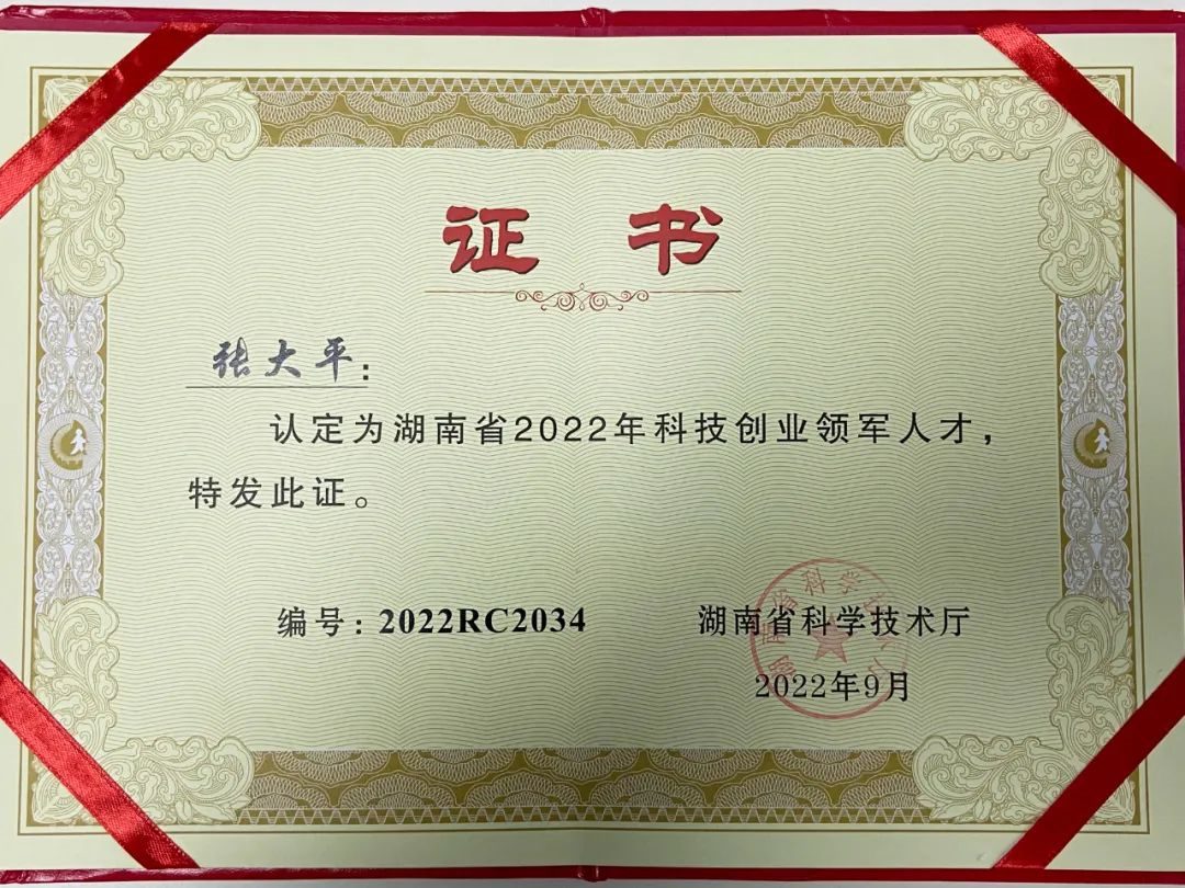 艾科瑞生物董事长张大平先生荣获“湖南省2022年科技创业领军人才”称号