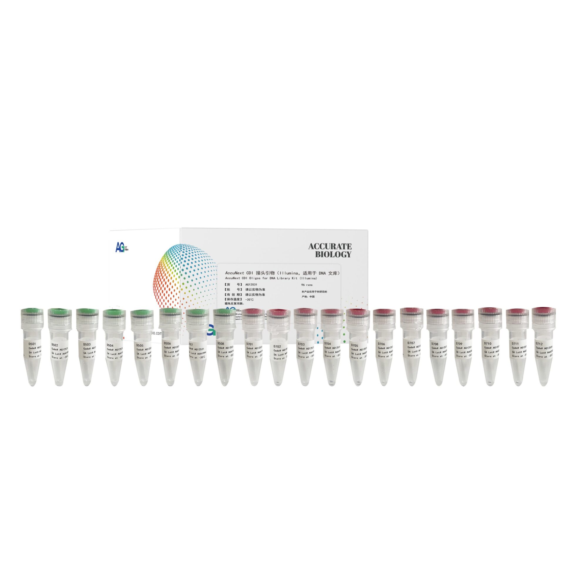 本产品是针对 illumina 高通量测序平台文库构建专用的双 Index 的 PCR 接头引物试剂盒。本产品中包含 i5 Index Primer 和 i7 Index Primer,最多可用于构建 96 种不同组合的双端 Index 标记文库,可搭配 DNA 建库产品使用【例如使用本公司的 AccuNext DNA Library Prep Kit for Illumina (Code No. AG12535 / AG12536) 和 AccuNext Short Adapter for DNA Library Kit ( Illumina)(Code No. AG12537 / AG12538)】,构建适用于 illumina 高通量测序平台测序的 DNA 文库。本产品中提供的所有试剂都经过严格的质量控制和功能验证,保证了文库构建的成功率。