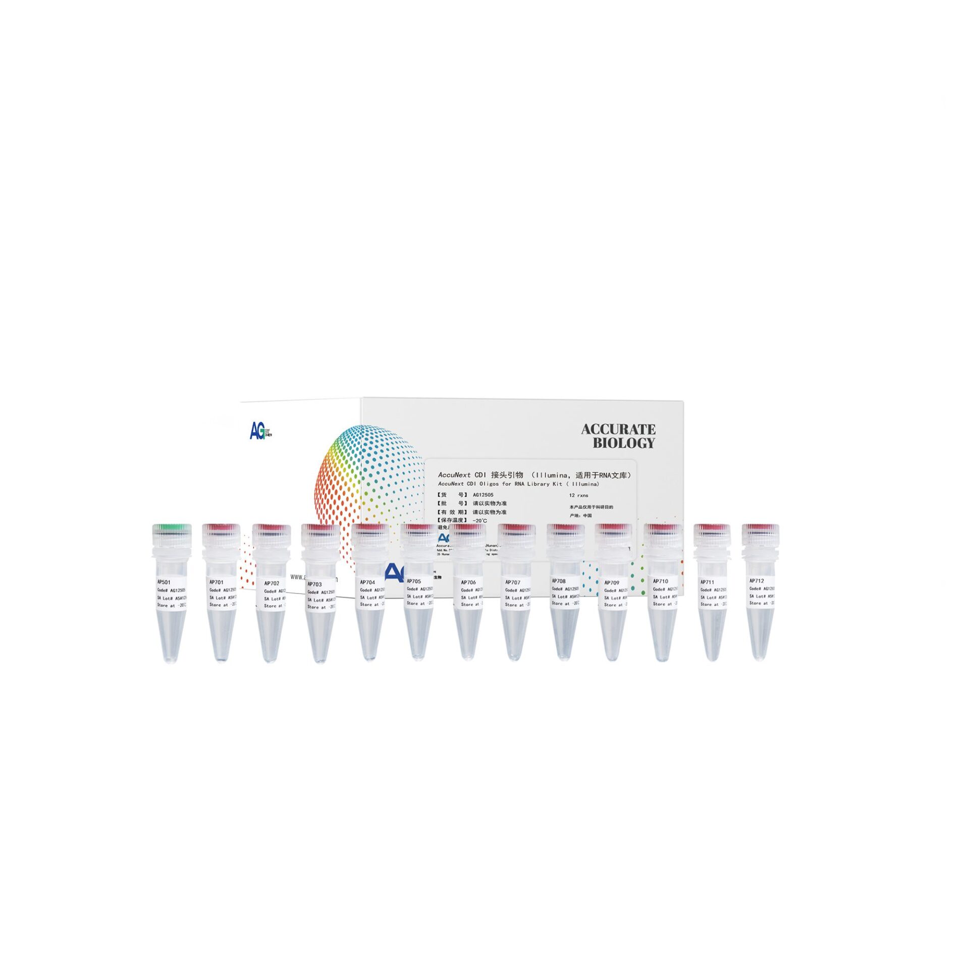 AccuNext CDI 接头引物(Illumina,适用于 RNA 文库)是针对 Illumina 高通量测序平台文库构建专用的双 Index 的 PCR 接头引物试剂盒。本产品中包含 i5 Index Primer 和 i7 Index Primer,最多可用于构建 96 种不同组合的双端 Index 标记文库,可搭配本公司 RNA建库产品使用【如 AccuNext 链特异性 RNA 文库制备试剂盒 (Illumina)(Code No. AG12503 / AG12504)】,构建适用于 Illumina 高通量测序平台测序的文库。本产品中提供的所有试剂都经过严格的质量控制和功能验证,保证了文库构建的稳定性和重复性。