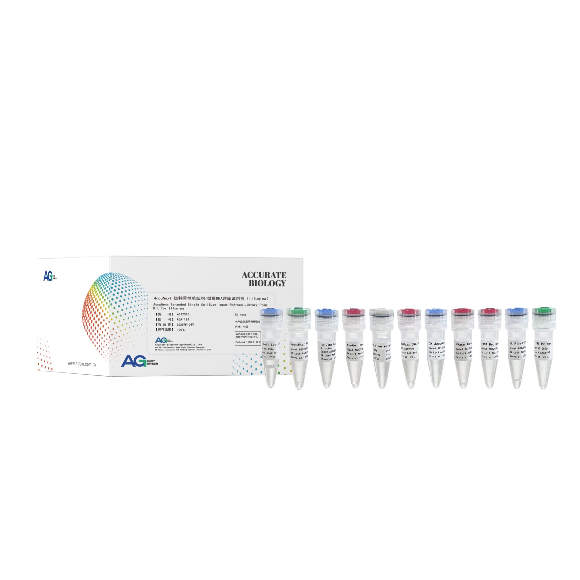 本产品是针对 illumina 高通量测序平台设计的链特异性 RNA 测序文库构建试剂盒,可从 1~100 个人源细胞或 10 pg ~ 10 ng 的 Human Total RNA 样本进行 RNA 文库构建,包含 RNA 片段化、逆转录 ( RT ) 、PCR 文库扩增和核糖体 RNA 去除所需的所有组分。本产品通过加热使 RNA 片段化,然后用带通用接头序列的 3′-N6 Primer 进行反转录,利用反转录酶的末端转移酶活性,在 cDNA 末端加上特定接头;搭配带有 illumina测序接头的引物进行 PCR 扩增【例如,AccuNext CDI 接头引物(Illumina,适用于 RNA文库)(Code No. AG12505、AG12506、AG12507)】,随后进行核糖体 RNA 去除,再使用通用引物进行二轮扩增,纯化完成即可获得适用于illumina测序平台的测序文库。
