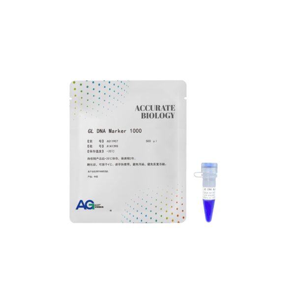 本产品由1000 bp,700 bp,500 bp,400 bp,300 bp,200 bp, 100 bp 七条带组成。