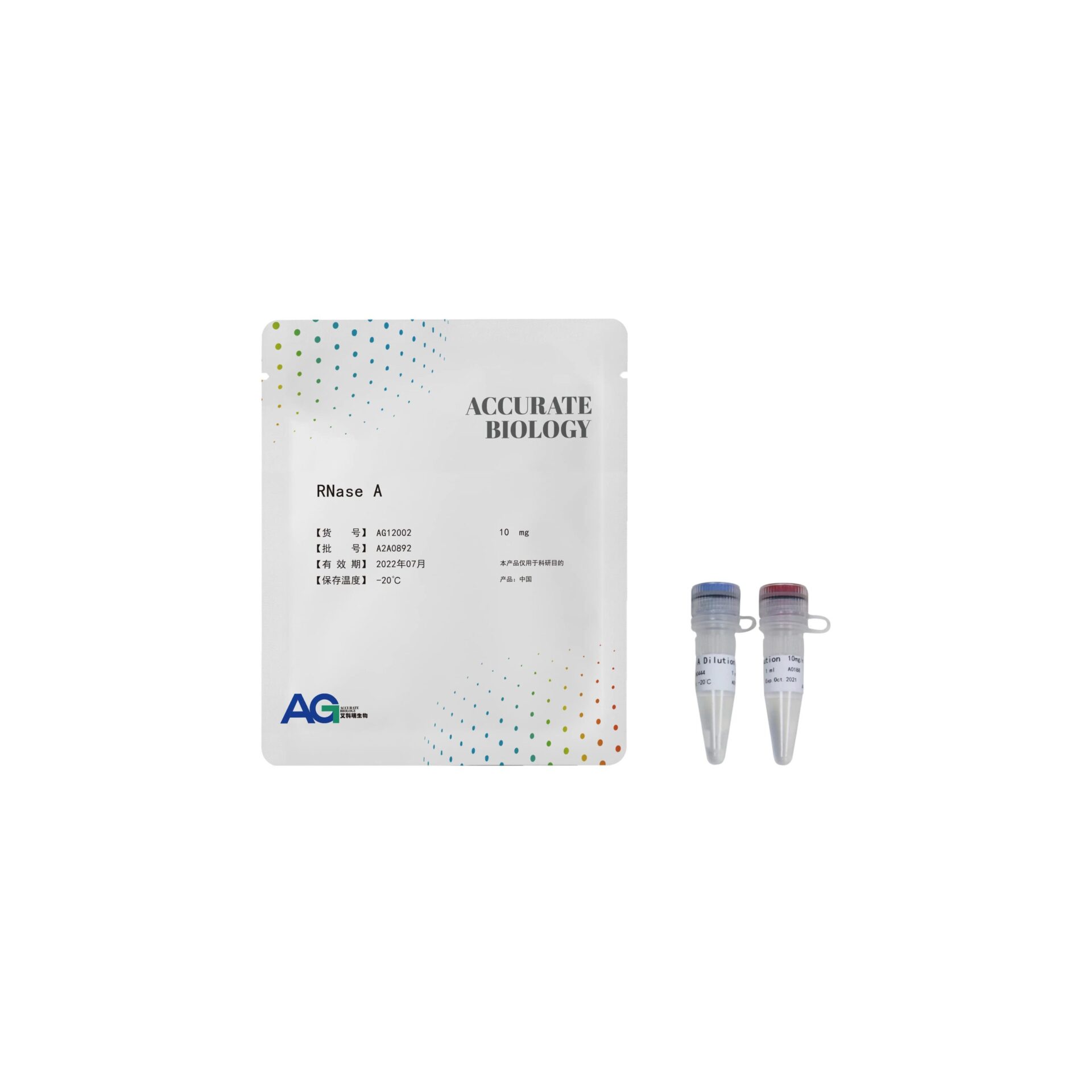 RNase A 是一种内切核糖核酸酶。可用于降解单链 RNA。本制品为溶液状态,产品中已去除 DNase 酶污染,无需预先加热,可以直接使用。本试剂盒中还添加了 RNase A 的 Dilution Buffer,方便客户进行稀释后使用。