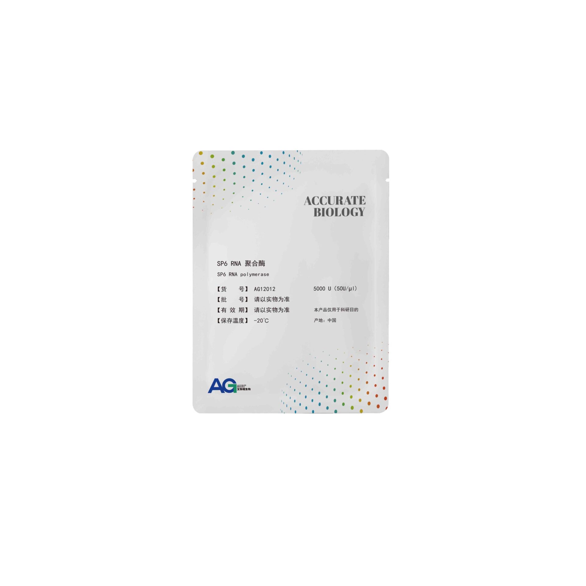 本产品是大肠杆菌重组表达来源的噬菌体 SP6 RNA 聚合酶,该酶是一种 DNA 依赖型 RNA 聚合酶,分子量为 98.5 kDa。使用 SP6 RNA 聚合酶合成的 RNA 适用于各种科学研究和生物技术应用。本酶以含有 SP6 启动子序列的双链 DNA 为模板,以 NTP 为底物,合成与启动子下游的单链 DNA 互补的 RNA,对 SP6 启动子序列具有高度特异性,不能识别其它生物来源的启动子。SP6 启动子序列如下,ATTTAGGTGACACTATAGAAGNG,其中的G为转录的第一个碱基。
