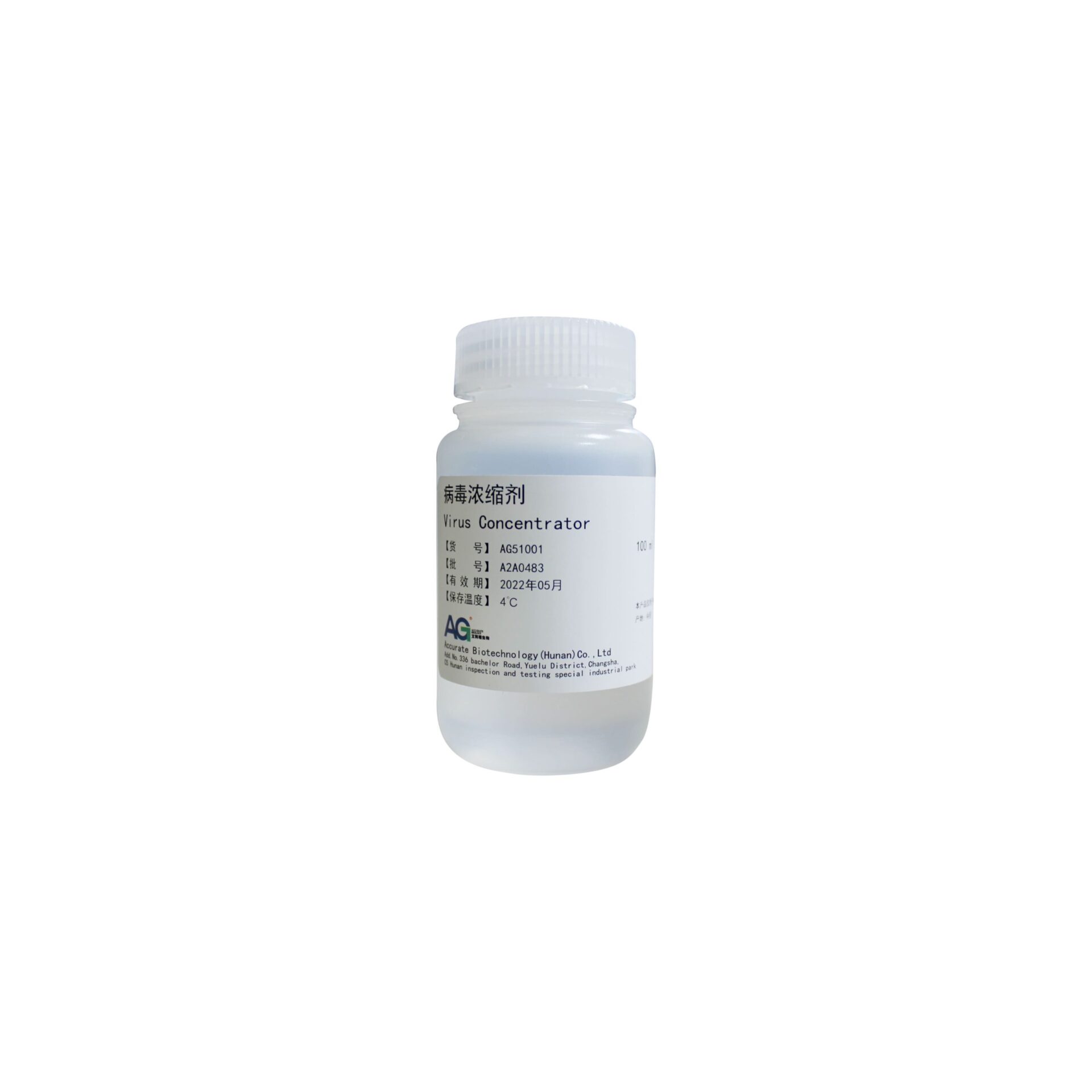 本制品提供了一种简单、快速、高效的方法来浓缩病毒。无需超速离心,只需将病毒上清液与本制品按一定比例混合后放置,采用标准离心机离心去除上清,重悬沉淀,即可获得高浓度病毒液,浓缩倍数可达 100 倍以上,可用于少量实验样品处理或者大规模病毒制备。本试剂盒可浓缩逆转录病毒、慢病毒、腺病毒等多种病毒,浓缩的病毒可用于感染实验、DNA 或 RNA 纯化等。